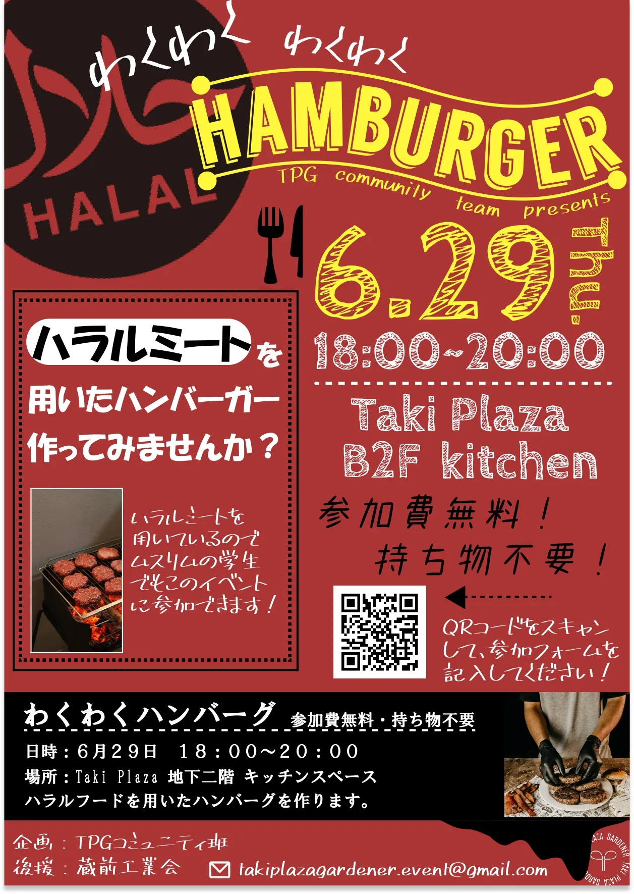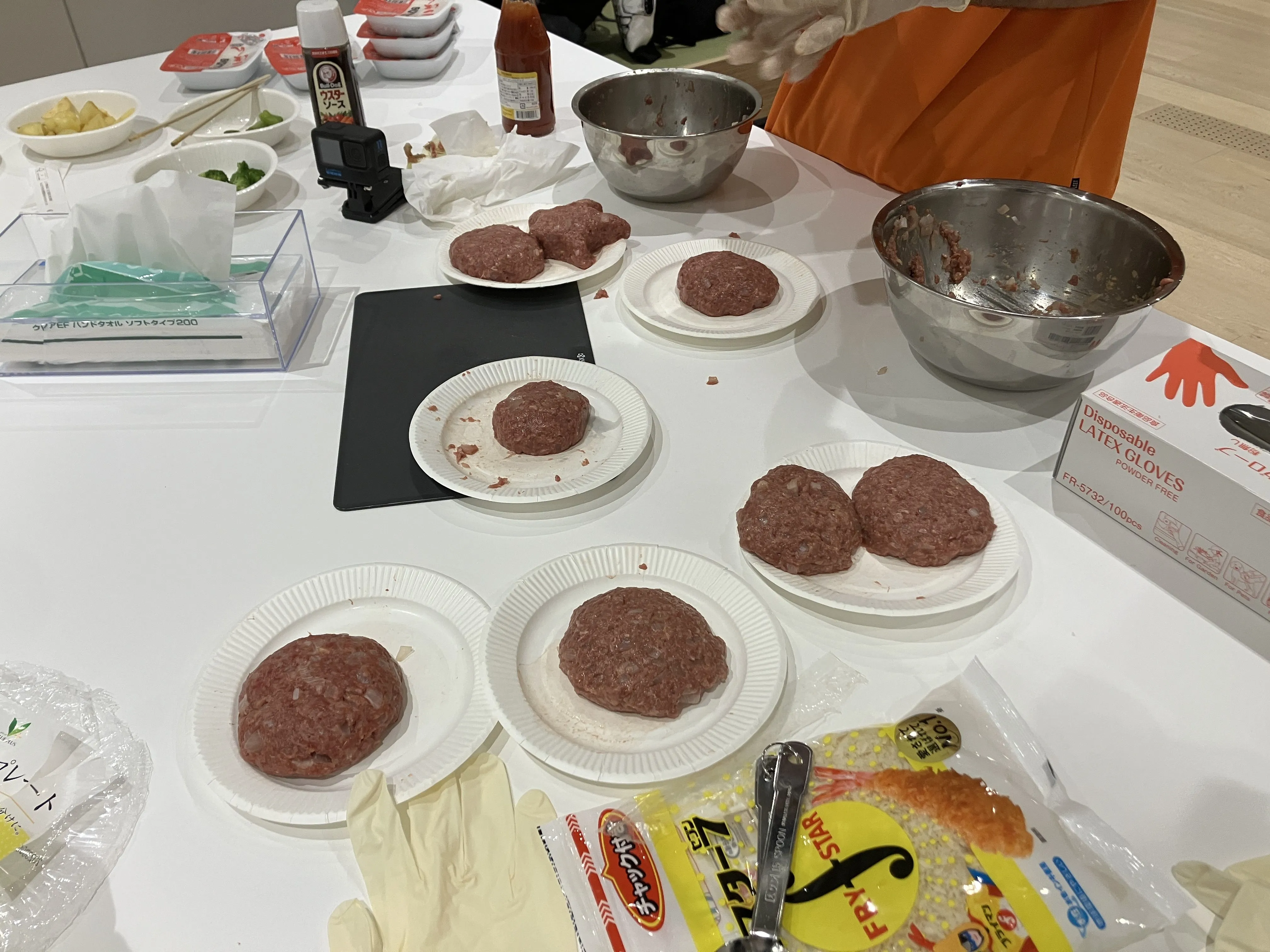 ハラルのお肉を使ったハンバーグを一緒に作りました。ハラルとはイスラム教でも許されているものを指します。つまり、ハラルのお肉ならイスラム教の方でも食べられるということです!ただハンバーグを作るのではなく、ハラルのお肉を使うことで、全ての人に参加していただける企画となりました。